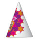 Bright star pattern add your own photo and name party hat. Ideal for a special ladies 60th birthday party celebration. Colorful pink, orange and white design. Background colour can also be changed for your own choice currently white. Original art and design by Sarah Trett. www.sarahtrett.com for www.mylittleeden.com