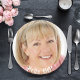 Template for Your photo. White text overlay: Hello 60! Curved text. A paper plate for a 60th birthday party.