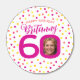 Bright colorful confetti random dots birthday 60th surprise party favor kisses. In deep pink, red, coral, golden yellow and yellow on white. Add your own birthday girl's photo in the centre of the 0 in 60 and customize with your own sixtieth birthday girls name. Other matching items and milestone birthday years available. Original design by www.mylittleeden.com on zazzle.