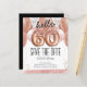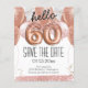hello 60 birthday party save the date pink glitter balloons. Save the date rose gold number balloons with faux pink glitter. Girly, elegant, trendy. Easy to adjust template.