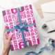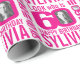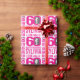 Fun 60th pink on white personalized photo milestone birthday wrap. Personalize this birthday wrapping paper with two photographs of the birthday girl in the middle of the number 0. Great idea for adding some fun to a milestone sixtieth birthday gift. Other matching items and colors are available. Exclusive design by Sarah Trett for www.mylittleeden.com