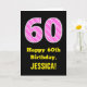 60th Birthday: Pink Stripes and Hearts "60" + Name Card