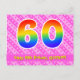 60th Birthday: Pink Stripes & Hearts, Rainbow 60 Postcard