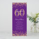 60th Birthday Program Gold Confetti Menu Purple