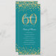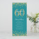 60th Birthday Program Gold Confetti Menu Teal