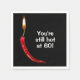 Red pepper on black background with candle wick and flame for 60th birthday.
