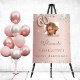 A welcome board for a girly and glamorous 60th birthday party. A rose gold background decorated with faux silver sparkles. Personalize and add a photo and name. Number 60 is written with a balloon style font.