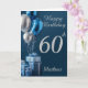60th Birthday Silver Blue Balloons And Gifts Card