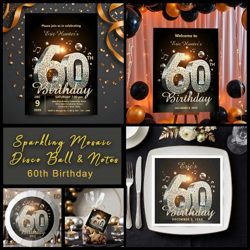 Sparkling Mosaic Disco Ball & Notes 60th BirthdayDesigned by Kristina Lj Petrovska