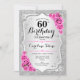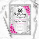 60th Birthday - Silver Stripes Pink Roses Invitation