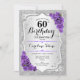 60th Birthday - Silver Stripes Purple Roses Invitation