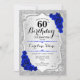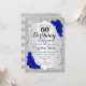 60th Birthday - Silver Stripes Royal Blue Roses Invitation