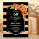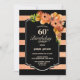 60th Birthday Striped Coral Floral Dinner Party Invitation