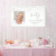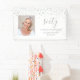 Help her celebrate her 60th birthday in style with this simple but elegant banner, featuring faux silver triangular confetti sifting down on her photo and the word "sixty" in silver gray handwriting font on a white background. Easily replace the sample image with a photo of your choice. Personalize the text with the name of the honoree in silver gray sans serif font, along with the occasion and date below in smaller gray type.