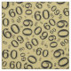 This design is a cool gold and black, graphic, number pattern with the number 60 repeated in varied sizes and angles in an all-over print.