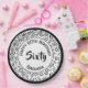 This over-the-hill design has a black and white random number pattern with the black milestone number 60 'repeated in varied sizes and angles for an all-over print. There is a white circle in the center for your text and black and white rings around the rim.