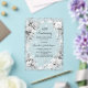 A frosted transparent background. Decorated with florals and a faux silver ribbon and faux diamonds. Personalize and add a name and details.