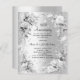 A faux silver looking background. Decorated with florals and a faux silver ribbon and faux diamonds. Personalize and add a name and details.