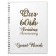 Our 60th Wedding Anniversary Party celebrating 60 years together, Guest Book Chic Elegant Gold Typography White Diamond Wedding Spiral Notebook