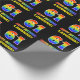 This cheerful, fun, and colorful birthday-themed wrapping paper design features a large number "61" and the message "HAPPY BIRTHDAY,", both colored with a rainbow spectrum gradient inspired pattern, along with a bold yellow customizable recipient name. The background is colored black. Fun birthday themed wrapping paper like this could be used to wrap a gift or present being given to celebrate somebody’s 61st birthday. [~Z0000475]