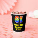 This fun and exciting birthday themed paper cup design features a large number “61” with a rainbow spectrum gradient inspired pattern, along with the message “Happy 61st Birthday,”, and an editable name. It also has a black-colored background. Colorful, vibrant paper cups like this might be fun to have at a birthday celebration/party being held in celebration of somebody’s sixty first birthday. [~Z0000537]