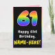 61st Birthday: Colorful Rainbow # 61, Custom Name Card