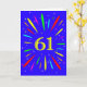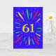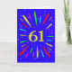 An explosive 61st birthday card! What a wonderful way to send birthday greetings. The number 61 in bright yellow with an explosion of bright colors and stars.