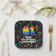This cheerful and vibrant birthday-themed paper plate design features a large number “61” with a rainbow spectrum gradient inspired pattern, along with the message “Happy 61st Birthday,”, and an editable name. The background features a vibrant and colorful pattern featuring many star shapes with different colors and sizes. Paper plates like this might be used at a birthday party for somebody who is celebrating their sixty first birthday. [~Z0000582]