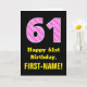 61st Birthday: Pink Stripes and Hearts "61" + Name Card