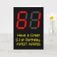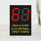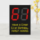 The front of this nerdy and fun birthday-themed greeting card design features a large number "61" with a red seven segment digital display style appearance, along with the message "Have a Great 61st Birthday," and a customizable name, on a black colored background. The inside features a customizable birthday greeting message, or could perhaps be cleared and left blank if a message is to be written by hand instead. A customizable birthday card like this might be a fun way to acknowledge somebody’s sixty first birthday. [~Z0000386]