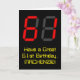 The front of this nerdy and fun birthday themed greeting card design features a large number "61" with a red seven segment digital display style appearance, along with the message "Have a Great 61st Birthday," and a personalized name, on a black colored background. The inside features a custom birthday greeting message, or could perhaps be cleared and left blank if a message is to be written by hand instead. A personalized birthday card like this might be a fun way to acknowledge somebody’s sixty first birthday. [~Z0000386]