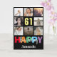 61st Happy Birthday Photo Collage Modern Black Card with personalized name. For further customization, please click the "Customize it" button and use our design tool to modify this template.