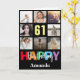 61st Happy Birthday Photo Collage Modern Black Card