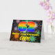 The front of this bold and cheerful birthday-themed greeting card design features a large number “62” having a multicolored rainbow spectrum inspired gradient pattern. It also features the message “HAPPY 62nd BIRTHDAY,”, and a personalized recipient name. The background of the front has a vibrant, colorful pattern inspired by bursting celebratory fireworks. The inside has a customizable birthday greeting message, or could perhaps be cleared and left blank if a message is to be written by hand instead. An eye-catching, customized birthday greeting card like this might be used to acknowledge somebody’s sixty-second birthday. [~Z0000619]