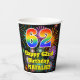 This cheerful and colorful birthday paper cup design features a large number “62” with a rainbow spectrum gradient inspired pattern, along with the message “Happy 62nd Birthday,”, and a customizable name. The background features a vibrant and colorful bursting celebratory fireworks inspired pattern. Colorful, vibrant paper cups like this might be fun to use at a birthday party being held to celebrate somebody’s 62nd birthday. [~Z0000539]