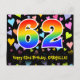 62nd Birthday: Fun Hearts Pattern, Rainbow 62 Postcard