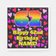 This joyful and happy birthday paper napkin design features a large number “62” with a rainbow spectrum gradient inspired pattern, along with the message “Happy 62nd Birthday,”, and a personalized name. The background features a pattern of pink, red, and purple heart shapes. Upbeat, joyful paper napkins like this might be fun to use at a birthday celebration being held to honor somebody’s sixty second birthday. [~Z0000550]