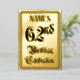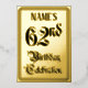 The front of this opulent sixty-second birthday party foil announcement/invitation card design features the message “62nd Birthday Celebration” in elegant script-style text. It also features an editable name. The back features personalized details about the event, such as the date, time, place, and any other information that may be important. Ornate, fancy, customized invitations like these might be used to invite guests to a birthday party being held to honor somebody’s sixty-second birthday. [~Z0000596]