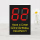The front of this fun and nerdy birthday-themed greeting card design features a large number "62" having a red seven segment digital display style appearance, along with the message "Have a Great 62nd Birthday," and a custom name, on a black colored background. The inside features an editable birthday greeting message, or could perhaps be cleared and left blank if a message is to be written by hand instead. A personalized birthday card like this might be a fun way to send a message in celebration of somebody’s sixty second birthday. [~Z0000386]