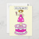 A cartoon lady standing on a large cake and wearing a glamorous pink dress. She is holding a cocktail in one hand and saying '63 is the new 43'.