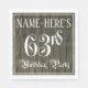 This luxurious and elaborate birthday party themed paper napkin design features an editable name and the message “63rd Birthday Party”. The large number “63rd” and the words “Birthday Party” are in elegant script-style text. The background has a faux/imitation woodgrain-inspired pattern. Ornate, fancy paper napkins like this might be used at a birthday celebration being held to celebrate somebody’s 63rd birthday. [~Z0000564]