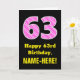 63rd Birthday: Pink Stripes and Hearts "63" + Name Card