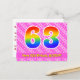 63rd Birthday: Pink Stripes & Hearts, Rainbow 63 Postcard