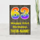 63rd Birthday: Rustic Faux Wood Look, Rainbow "63" Card