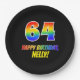 64th Birthday: Bold, Fun, Simple, Rainbow 64 Paper Plates
