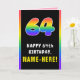 64th Birthday: Colorful Rainbow # 64, Custom Name Card