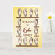 64th birthday card. Curious owls turning their heads to look at you and asking 'Who has a birthday today?'. A funny birthday card for anybody who likes owls. The owls shown are barn owls.