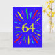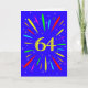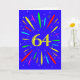An explosive 64th birthday card! What a wonderful way to send birthday greetings. The number 64 in bright yellow with an explosion of bright colors and stars.