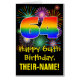 The front of this vibrant, colorful, and joyful birthday-themed greeting card design features a large number “64” with a rainbow spectrum gradient inspired pattern, along with the message “Happy 64th Birthday,”, and a custom recipient name. The front additionally features an exciting and colorful background pattern inspired by bursting celebratory fireworks. The inside features a personalized birthday greeting message, or could perhaps be cleared and left blank if a message is to be written by hand instead. A customizable birthday card like this might be a fun way to celebrate somebody’s sixty fourth birthday. [~Z0000526]