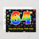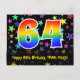 64th Birthday: Fun Stars Pattern, Rainbow 64, Name Postcard